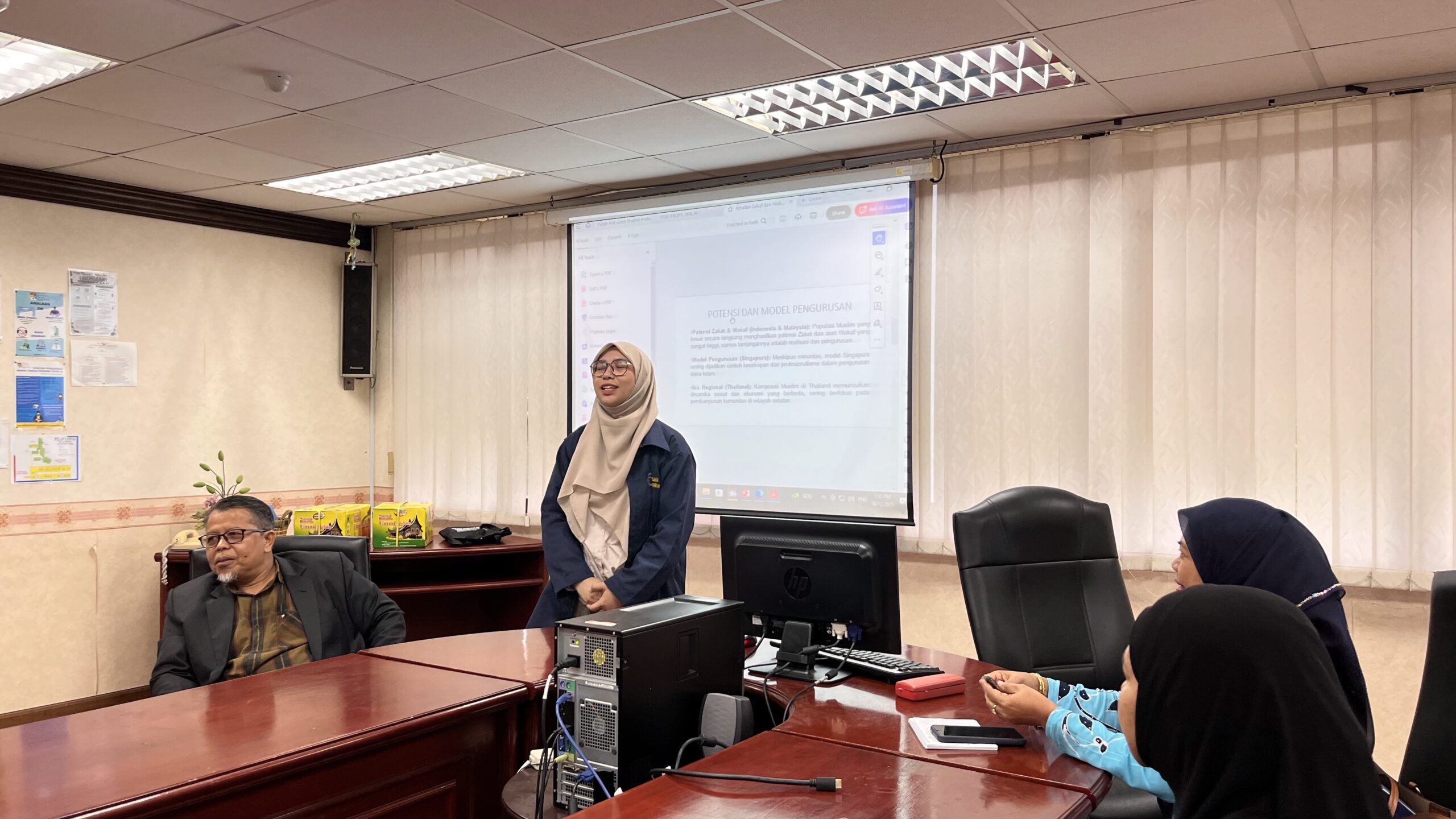Semangat internasionalisasi juga ditunjukkan oleh 8 mahasiswa FEBI UIN Bukittinggi. Secara kolaboratif, mereka tampil bersama para dosen untuk mempresentasikan analisis mendalam mengenai “Potensi Zakat di Indonesia dan Malaysia”. Penampilan ini menjadi bukti bahwa mahasiswa FEBI dididik untuk memiliki daya saing dan kepercayaan diri di forum lintas negara.