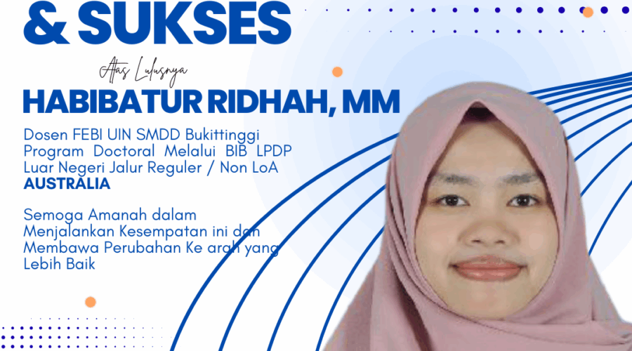 KETUA PRODI MHU FEBI UIN BUKITTINGGI, HABIBATUR RIDHAH, LOLOS BEASISWA LPDP DOKTORAL DI AUSTRALIA Bukittinggi – Kabar gembira datang dari Fakultas Ekonomi dan Bisnis Islam (FEBI) UIN Sjech M. Djamil Djambek Bukittinggi. Ibu Habibatur Ridhah, MM, yang menjabat sebagai Ketua Program Studi Manajemen Haji dan Umrah (MHU), berhasil lolos seleksi beasiswa Pendidikan Indonesia (BIB) Lembaga Pengelola Dana Pendidikan (LPDP) untuk melanjutkan studi S3 di luar negeri. Prestasi ini memungkinkan Ibu...Read More