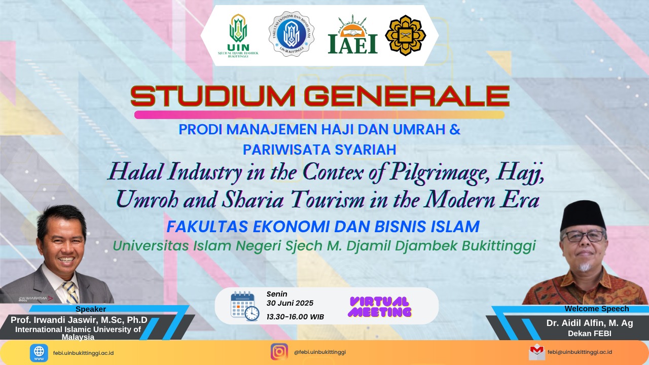 PROF. IRWAN JASWIR SOROTI INDUSTRI HALAL DALAM KONTEKS HAJI, UMRAH, DAN PARIWISATA SYARIAH DI UIN BUKITTINGGI Bukittinggi 30/06/2025 – Program Studi Manajemen Haji dan Umrah (MHU) dan Program Studi Pariwisata Syariah (Parsya) Fakultas Ekonomi dan Bisnis Islam (FEBI) UIN Bukittinggi berhasil menyelenggarakan Studium Generale yang mendatangkan narasumber internasional, Prof. Irwan Jaswir, M.Sc.Ph.D., seorang akademisi terkemuka...Read More